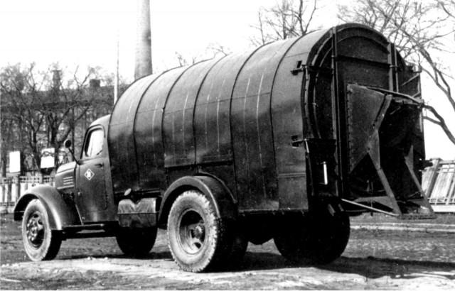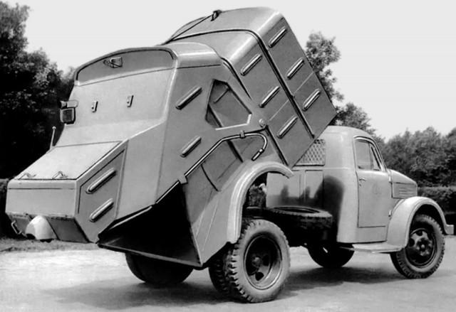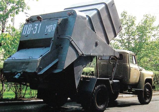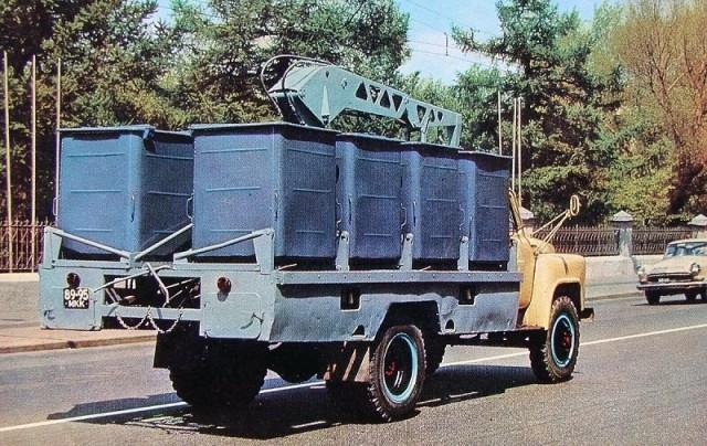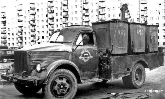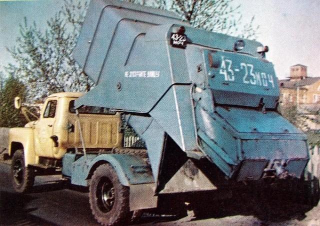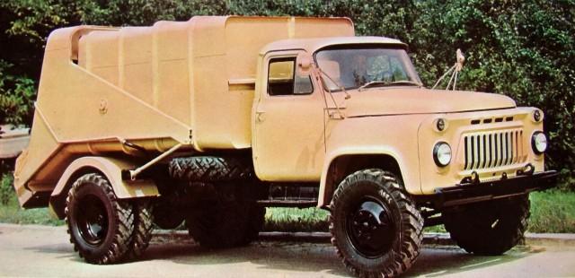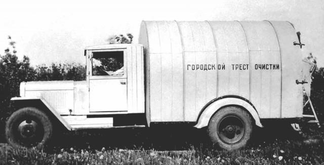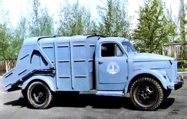 В Советском Союзе специальные машины для сбора и перевозки городских нечистот появились лишь после Великой Отечественной войны. Все они базировались на обычных грузовиках и поначалу откровенно копировали иностранные конструкции. В долгом процессе наверстывания работ по мусоровозам на десятках многопрофильных предприятий было построено множество моделей и введена их классификация: контейнерные, перевозившие мусор в сменных контейнерах, баках или бачках, и кузовные (бункерные) с саморазгружающимися кузовами.