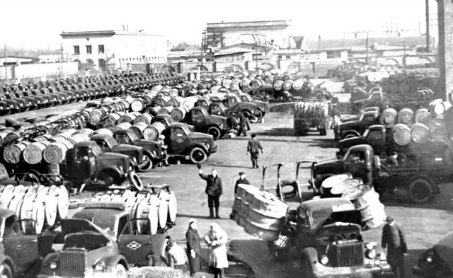 Контейнерные мусоровозы МКМ-4 в главном ленинградском автопарке спецтехники № 1. 1963 год