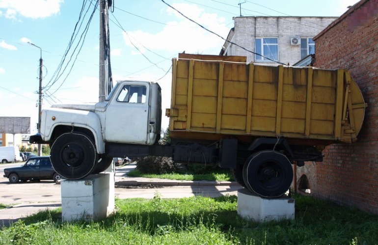 Мусоровоз КО-413 на базе грузового автомобиля ГАЗ-53 установлен в виде памятника у ворот коммунального предприятия, у дома №70 на улице Первомайской в городе Новомосковске Тульской области.