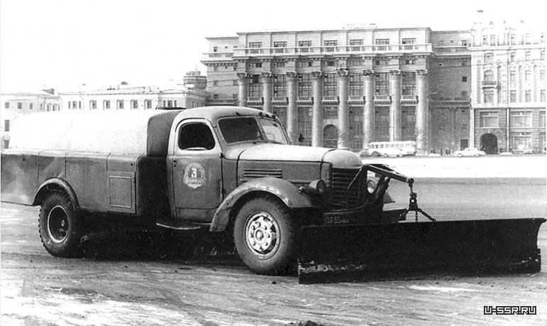 Первая попытка механизировать труд вездесущих дворников при очистке от снега тротуаров и дворов была предпринята в 1937 году, но до середины 50-х этот процесс носил самодельно-хаотичный характер. В наиболее простом исполнении на передней толкающей раме полуторок и трёхтонок военного образца монтировали пассивные одно- или двухотвальные плужные рабочие органы, прямых родственников сельскохозяйственных плугов, сдвигавших снег в одну или в обе стороны от проезжей части.