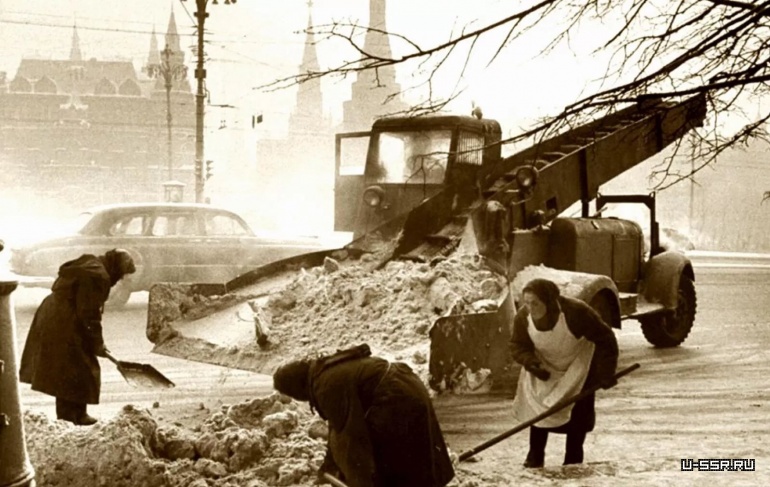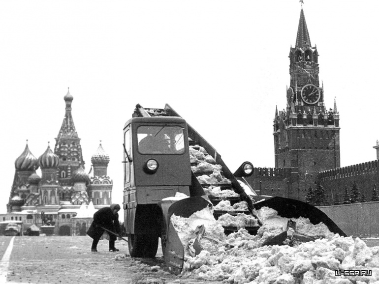Тяжелый женский труд на фоне Красной площади: машина 2С-3 на уборке залежалого снега