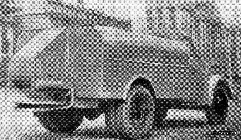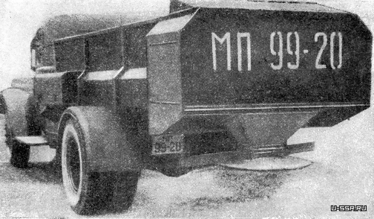 Ленинградский разбрасыватель МПР-10 на базе ЗИС-5 с металлическим кузовом, подвешенным на пружинах. 1946 год