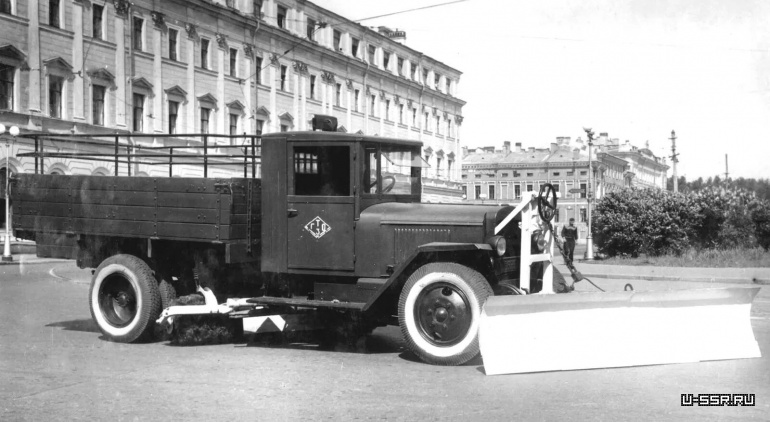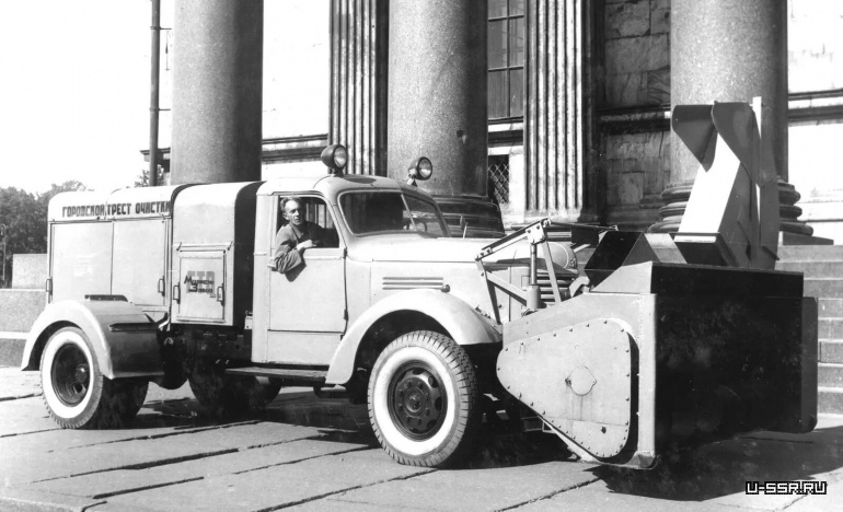 Послевоенный ЗИС-5 с одноотвальным плугом ПС-2 с ручным управлением и щёткой, собранный в 15 экземплярах. 1945 год