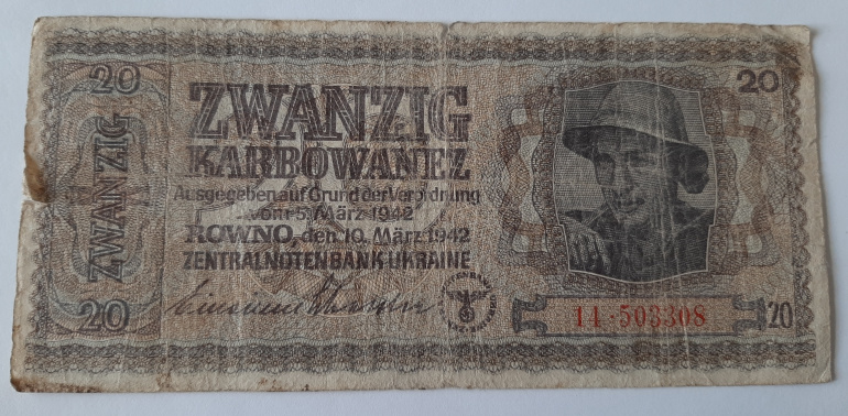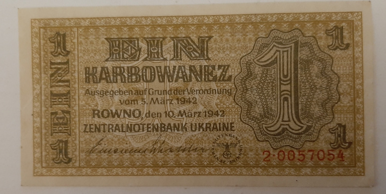 22 июня 1941 года мирное небо над Советским Союзом было взорвано – началась Великая Отечественная война. Гитлеровским войскам удалось в короткие сроки оккупировать огромную территорию Прибалтики, Украины, Белоруссии и РСФСР. Центром Украины. Ее оккупационной столицей Гитлер избрал небольшой город Ровно. В это время в нем ходили в обращении советские денежные знаки: монеты достоинством от 1 до 20 копеек и банкноты от 1 до 5 рублей и от 1 до десяти червонцев. Немецкая оккупационная администрация разрешила оборот советских денег, не смущало даже то, что на червонцах был изображен портрет В.И. Ленина – основателя Советского государства. Оккупанты установили курс 10 рублей за 1 марку. Весной 1942 года гитлеровцы создали Центральный эмиссионный банк Украины, деньги стали печатать в берлинской государственной типографии. Были выпущены банкноты достоинством от 1 до 500 карбованцев образца 1942 года. Гитлеровцы запретили оборот советских бумажных денег, монета к этому времени вышла из обращения, осев в карманах населения, так как монеты дороже бумажных банкнот. Однако выпущенных в Германии денег не хватало для немецких войск, оккупационной администрации и населения, поэтому немцы снова разрешили к обращению советские купюры достоинством в 1, 3 рубля. Проблемы создавали и советские партизаны, которые пускали под откос немецкие эшелоны, в том числе и те, которые везли деньги. Так купюра достоинством в 2 карбованца известна, однако в обращение она так и не поступила – вагон с этит деньгами был сожжен партизанами. Карбованцы были введены в обращение 1 июля 1942 года. Все население должно было сдать советские деньги от 5 рублей и выше. Курс карбованца к рублю был установлен один к одному. В кассах разменивали только 200 рублей наличными деньгами, за остальные выдавали банковские расписки. То есть к моменту появления Зиберта – Кузнецова в Ровно, там в обращении находились немецкие монеты и банкноты, оккупационные карбованцы, советские рубли и монеты. При этом существовала определенная иерархия оборотных денег, так немецким офицерам и чиновникам денежное довольствие и заработную плату выплачивали райхсмарками, а полицаям и прочим оккупационными деньгами. Нужно заметить, что местному населению не рекомендовалось иметь при себе имперские деньги, при обысках их могли изъять. Но, конечно, у коммерсантов и прочих дельцов в ходу были именно райхденьги.