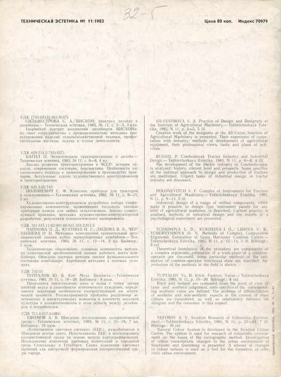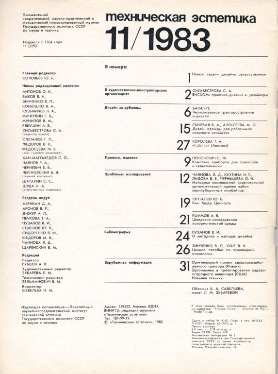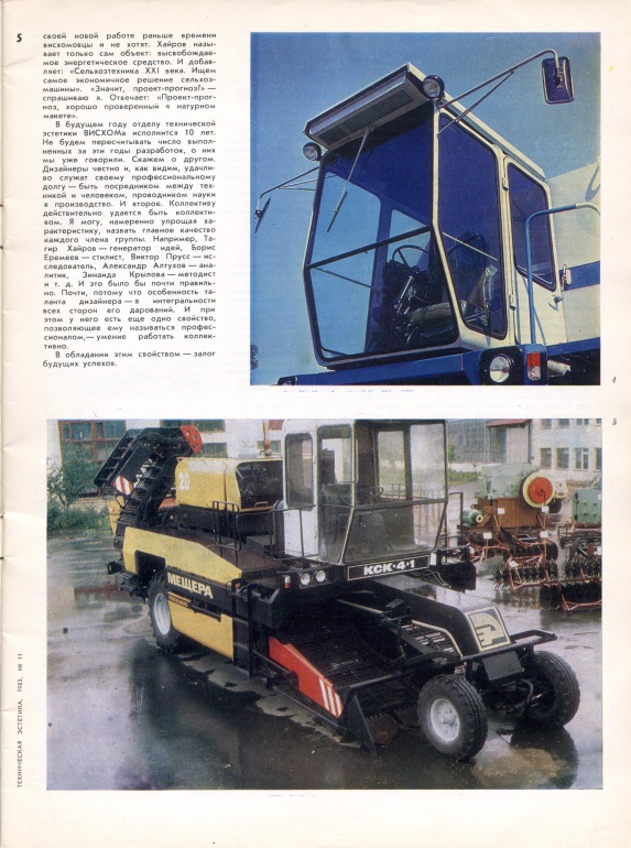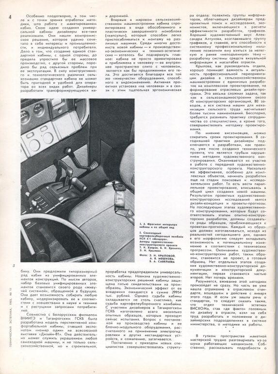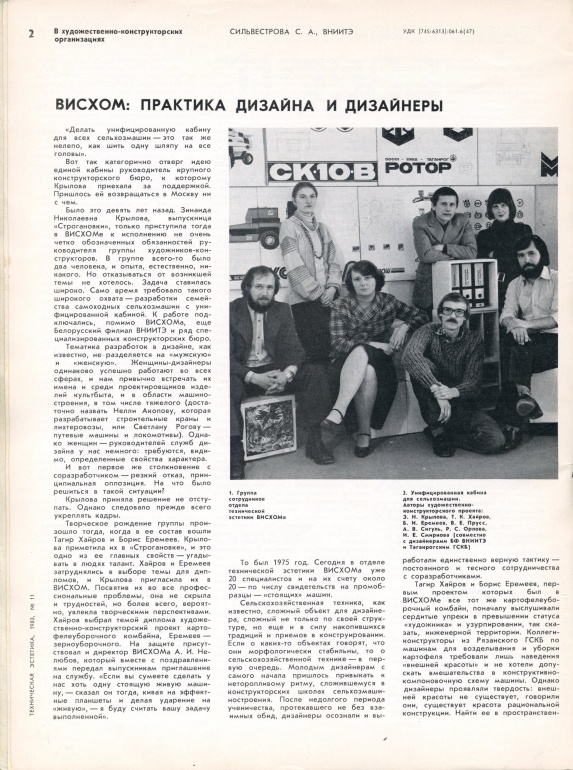 Творческий портрет коллектива дизайнеров ВИСХОМа: их опыт сотрудничества с промышленностью, методика проектирования изделий сельскохозяйственной техники, профессиональные взгляды, задачи и планы деятельности.