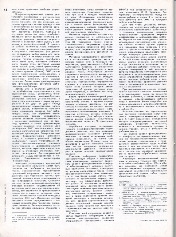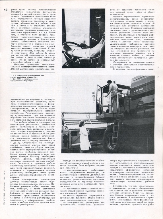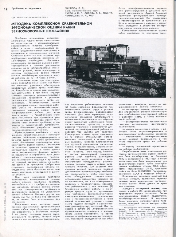 Методика комплексной сравнительной эргономической оценки кабин зерноуборочных комбайнов.