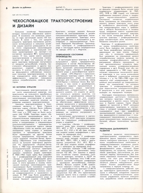 Анализ развития тракторостроения в ЧССР: история отрасли, современное состояние, перспективы. Особенности национального подхода к проектированию и производству тракторов. Актуальные задачи художественного конструирования в тракторостроении.
