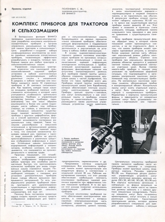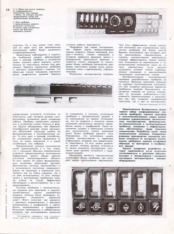 Художественно-конструкторская разработка набора унифицированных компонентов, позволяющих создавать типовые приборные панели для любых сельхозмашин. Анализ существующей практики, методика художественно-конструкторской разработки, результаты психологического эксперимента.