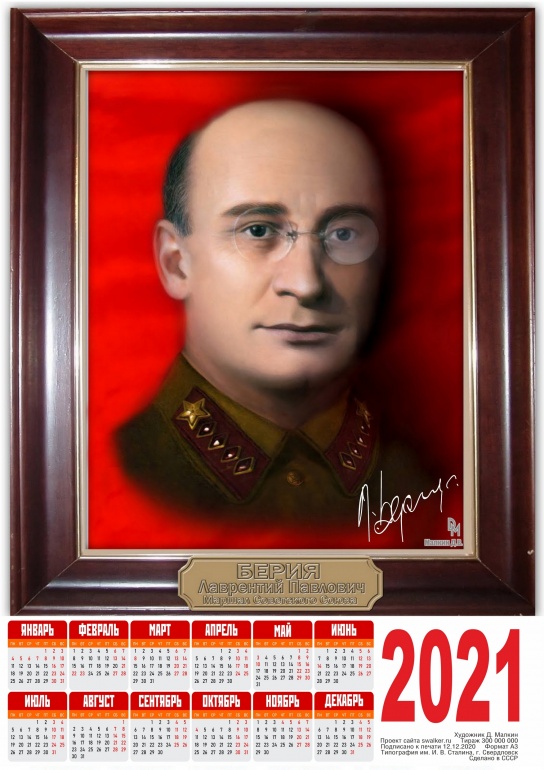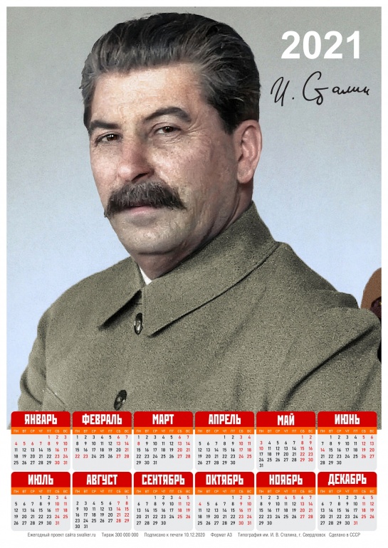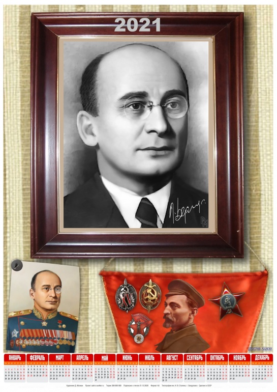Оригинальные советские календари на 2021 год. Сталин, Ленин, Гагарин, Берия, Дзержинский, Чапаев, Маяковский. Рабочий календарь на 2021 год с праздниками и выходными, утвержденными правительством РФ для пятидневки. На всех календарях присутствуют автографы изображённых личностей.