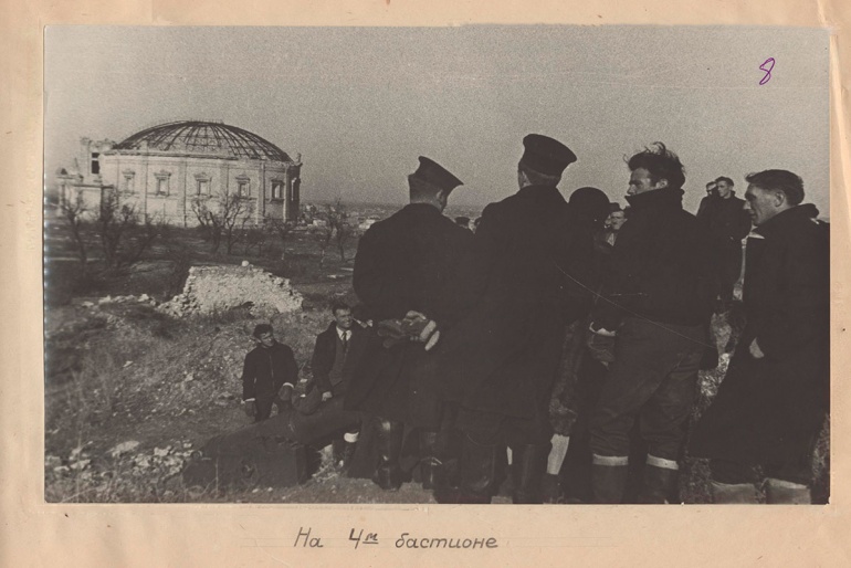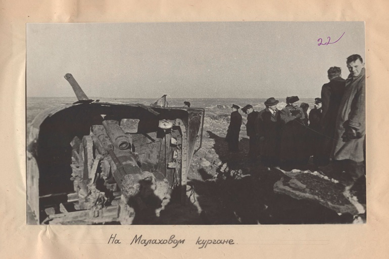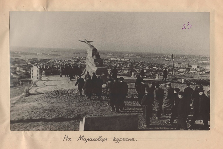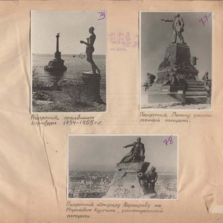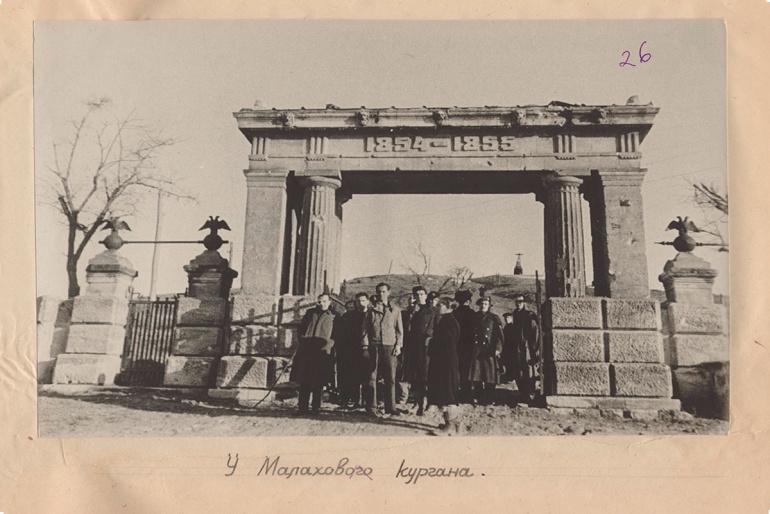 Памятник адмиралу Корнилову на Малаховом кургане, уничтоженный немцами. / Monument to Admiral Kornilov on Malakhov mound, destroyed by the Germans.