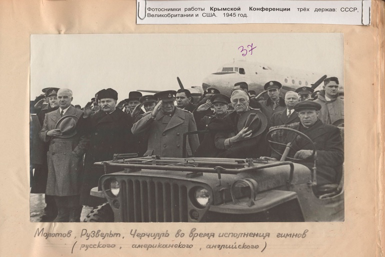 The section opens with the report of the commander of the black sea fleet squadron, Vice Admiral Sergei Gorshkov, dated January 19, 1945, on the conduct of special events in the run-up to the meeting.Declassified lists of members of foreign delegations have also been published. According to the documents, US President Franklin Roosevelt and British Prime Minister Winston Churchill arrived on American C-54 aircraft (a cargo plane known as the Douglas C-54 Skymaster), with Roosevelt's Board arriving five minutes before Churchill's plane.