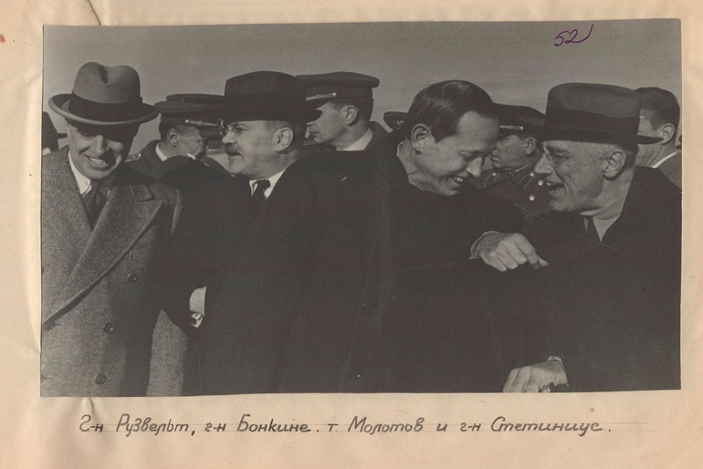 Господин Рузвельт, господин Бонкине, товарищ Молотов и господин Стетиниус / Mr. Roosevelt, Mr. Bankine, comrade Molotov and Mr. Stettinius