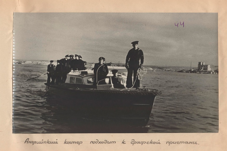 Английский катер подходит к Графской пристани / English boat approaches the Count's Wharf