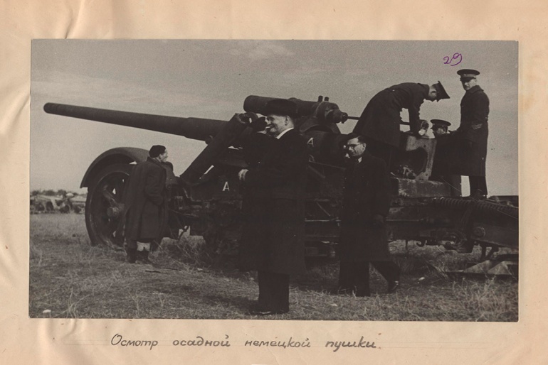 Осмотр немецкой осадной пушки / Inspection of the German siege gun