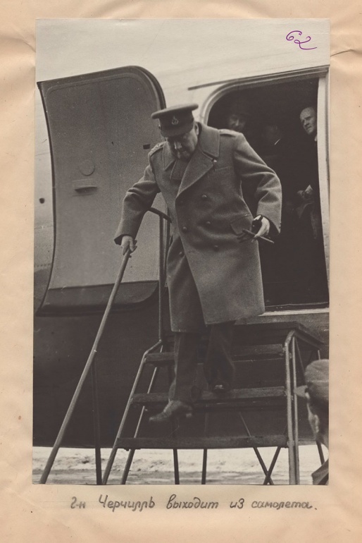 Господин Черчилль выходит из самолёта / Mr Churchill gets off the plane