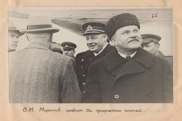 В. М. Молотов следит за прилётом гостей / Molotov monitors the arrival of guests