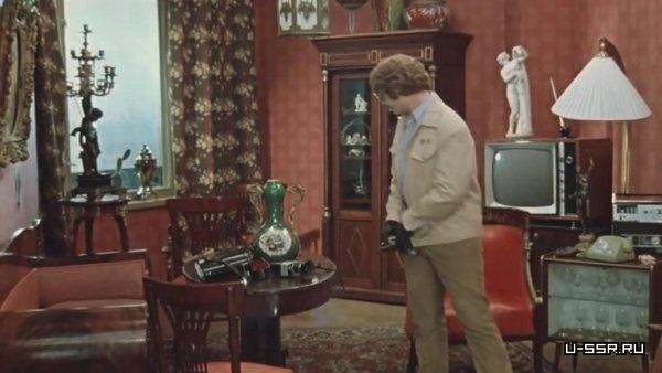 Квартиру Шпака украшает импортный цветной телевизор. Вещь не просто статусная, а подлинный центр интерьера в квартире счастливчика, который мог себе такое позволить. Два импортных магнитофона: катушечный National RQ-1585 и кассетный Philips EL3302. У людей-то и одного отечественного не было, а тут целых два импортных – явное свидетельство не просто «красивой» жизни, а очень красивой. Ну и «кинокамера импортная», что подразумевает и наличие проектора для просмотра отснятых фильмов. Это уже даже не роскошь, а неприличное излишество.