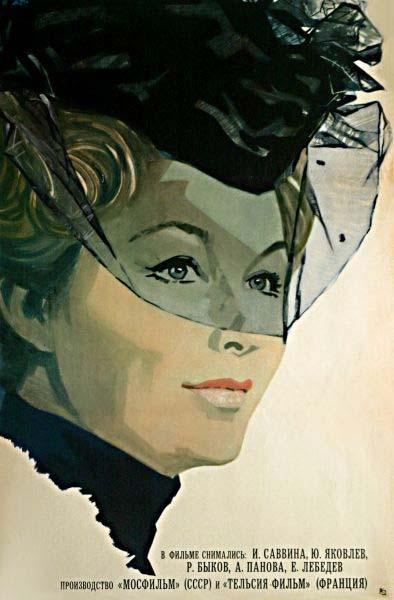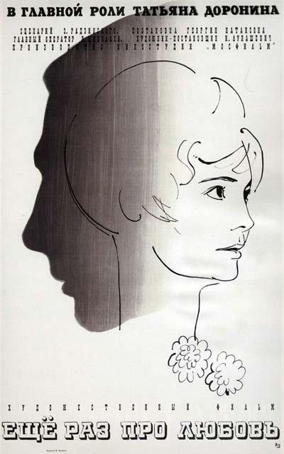 Это плакат советского фильма 1968 года «Ещё раз про любовь». И снова непонятки – зачем тут этот плакат? Видимо снова, женский профиль – на плакате это исполнительница главной роли Татьяна Доронина – должен был намекать, что эту роль сыграла Зиночка Тимофеева.