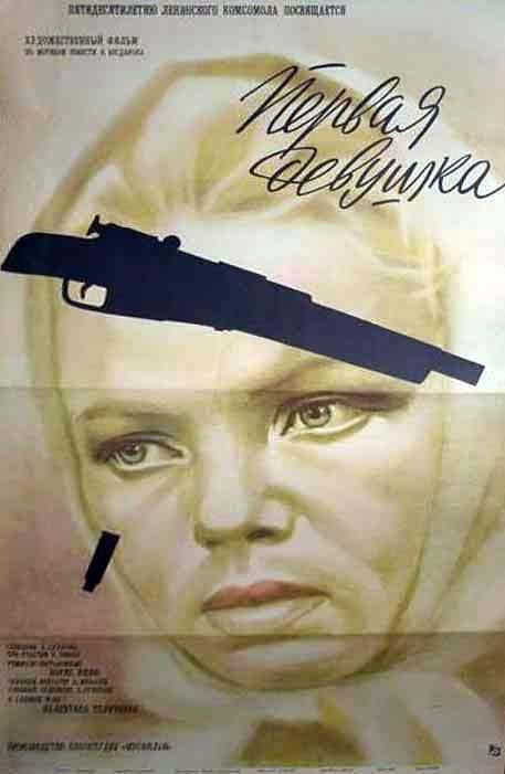 В общем, этот плакат точно на своём месте. Что там далее? Плакат №2. Ещё один фильм на революционную тему «Первая девушка», снятый в 1968 году.