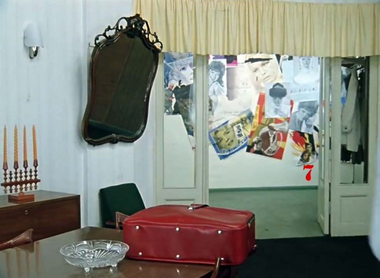 А далее я иссяк. Как ни искал, так и не смог идентифицировать остальные плакаты в этом углу прихожей квартиры Тимофеевых. Может кто-то из читателей узнает, что это за фильмы? Так пишите о этом в комментариях. Мы должны раскрыть последнюю тайну фильму «Иван Васильевич меняет профессию».