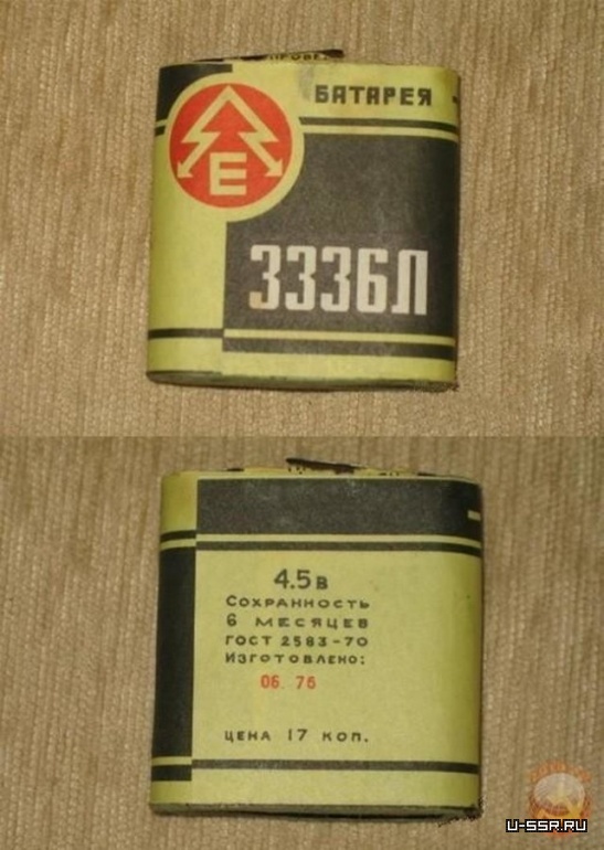 Квадратная батарея 3336 квадратная заменяла три обычные круглые батарейки — 4,5 В, плюс ее использования был в том, что она имела очень удобные контакты