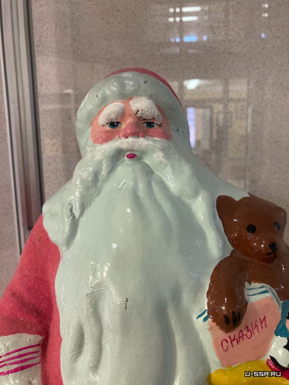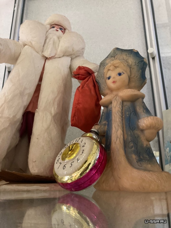 Самая старая фигура Деда Мороза сделана из ваты, те, что поновее — из пластмассы. Есть Снегурочки — резиновые пищалки.