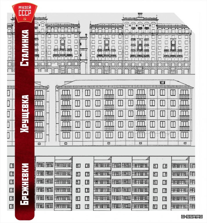 При Хрущеве началось массовое строительство типовых панельных домов (обычно 5 этажей) с малогабаритными квартирами под девизом “Для каждой семьи маленькое жильё, но свое”