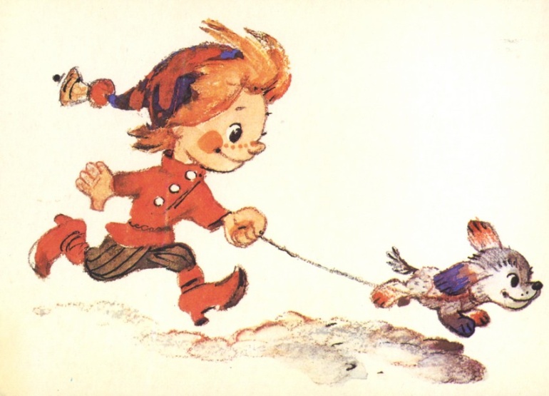 Петрушка хотел быстрее познакомиться с огромным миром, который его окружал, и, с любопытством оглядываясь по сторонам, бежал по улице. А впереди него подпрыгивал Тузик.