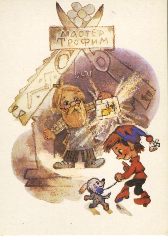 — Вот тебе и помощник! Только сшил, а он уже убежал,— пробормотал мастер Трофим, увидев, как Петрушка и Тузик выпрыгнули в окно.