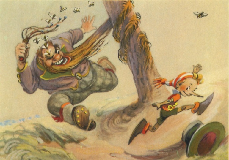 Буратино начал бегать вокруг дерева. Карабас бегал за ним, борода его обматывалась вокруг смолистого ствола и приклеивалась.