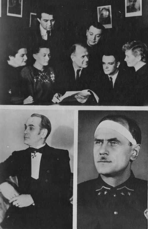 Э. Цесарская, Н. Алисова, Б. Бабочкин, В. Дружников, Е. Мельникова (сидят), М. Кузнецов, А. Цинман. Театр-студия киноактера. 1947 г.