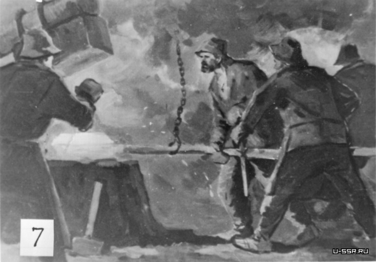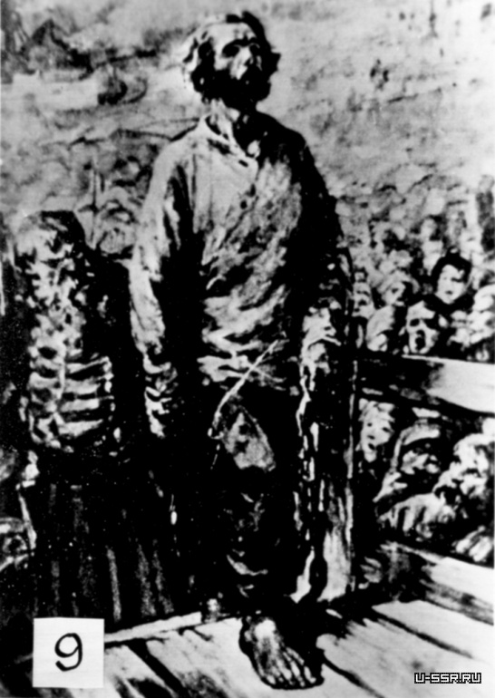 Н. Б. Пузанова ведут на казнь за убийство у правителя завода Савву Зотова за жестокое обращение с работными людьми 1814 г.