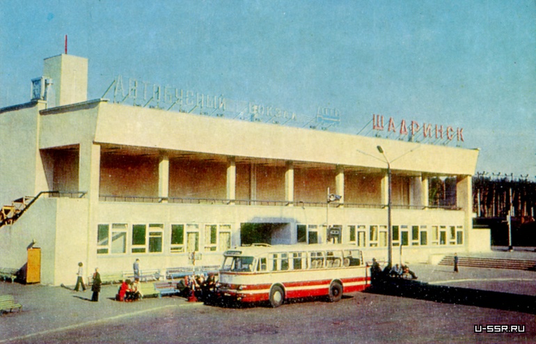 В конце 1974 г. в Шадринске вступил в строй новый объединенный автобусный и железнодорожный вокзал. Просторные залы ожидания украшены художественной росписью. Имеются буфеты, различные киоски, почтовое отделение, парикмахерская. В привокзальном ресторане желающие могут отведать традиционные местные блюда — мясо по-уральски и жареного гуся по-шадрински.