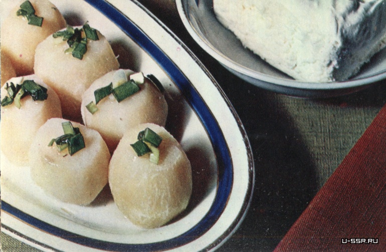 Творог подать залитым сметаной с кусочками сливочного масла. Особенно вкусен молодой картофель.