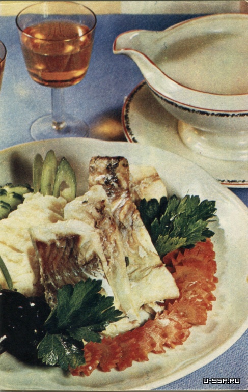 Варить вместе с морковкой и петрушкой. Затем залить рыбным желе и охладить. Холодную рыбу порезать.