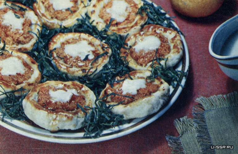Приготовить обыкновенное кислое дрожжевое тесто, раскатать его и нарезать на куски, которым придать форму ватрушек.