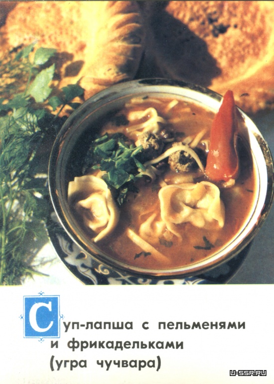СУП-ЛАПША С ПЕЛЬМЕНЯМИ И ФРИКАДЕЛЬКАМИ (УГРА ЧУЧВАРА)