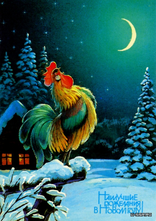 — На это, как всегда, нашлось время и настроение тоже. На почту эта вещь попадёт ещё не скоро, так что сегодня, можно сказать, предварительный просмотр у нас с вами. Видите: Петух с Собакой. Это я уже заглядываю в будущий Новый год Петуха, который передаёт эстафету совсем ещё далёкому году Собаки.