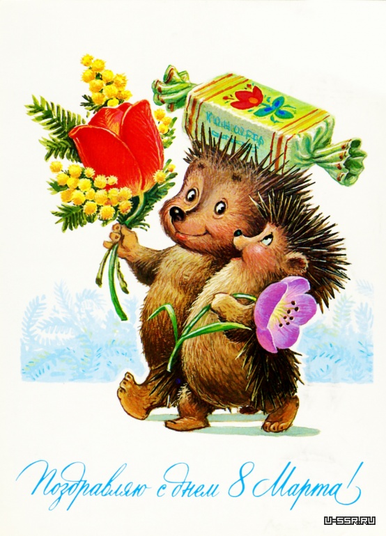 — Как раз из-за этой их оригинальности у меня бывали сложности на худсоветах. Ну, это ещё в «те» времена. Посмотрят, бывало, эскиз и начинают разбирать его с соцреалистических позиций: «А где это вы видели собаку, ходящую на двух лапах?», или: «Какой же медведь будет кричать в лесу “Ау!”?» Как объяснишь? Или вот история с весенней открыткой, на которой Ёжик преподносит Ежихе леденцового петуха. Он у меня был в сапогах, так худсовет заставил обувь с Ёжика снять. Открытку я переделал, но Ёжика стало жалко — легко ли босиком в мартовском снегу? Вот я ему одну лапу поднял, чтоб не мёрзла... В предыдущие годы немало моих открыток и конвертов, как говорится, распушили почём зря на худсовете.