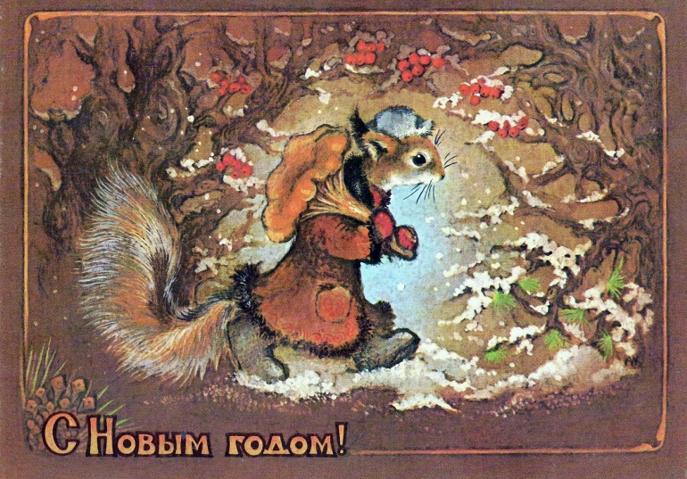 Белочка несёт рыжик к себе в дупло. Запасы на зиму никто не отменял, хоть и Новцй год.