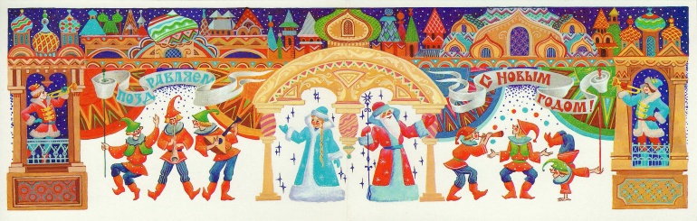 Дед Мороз, Снегурочка и скоморохи на празднике