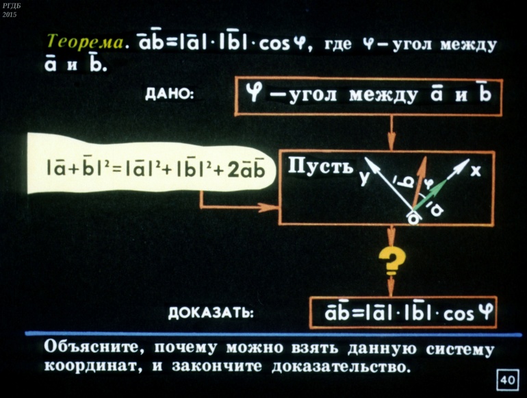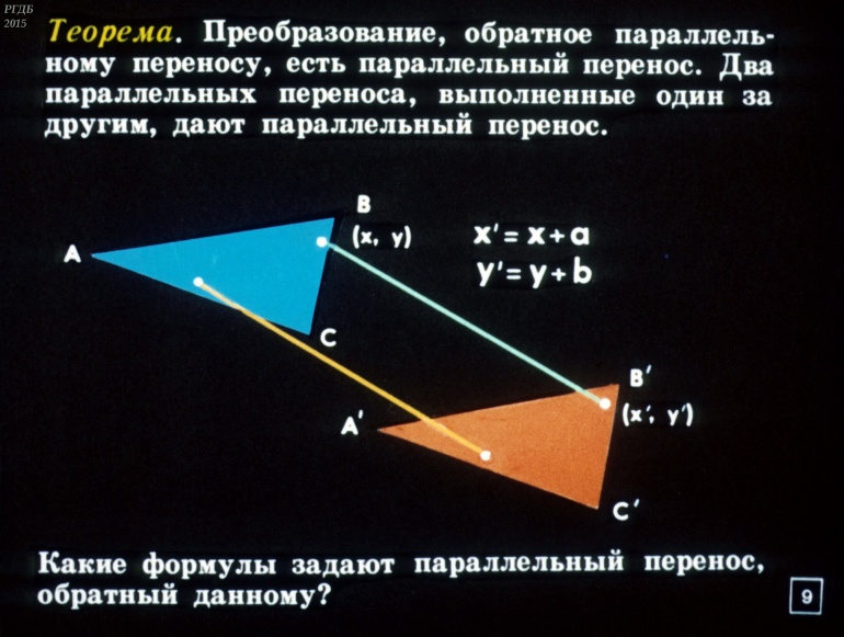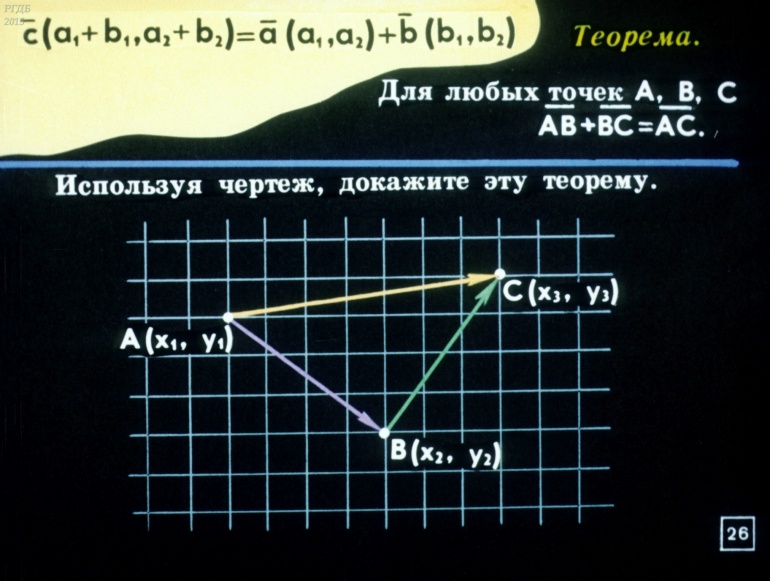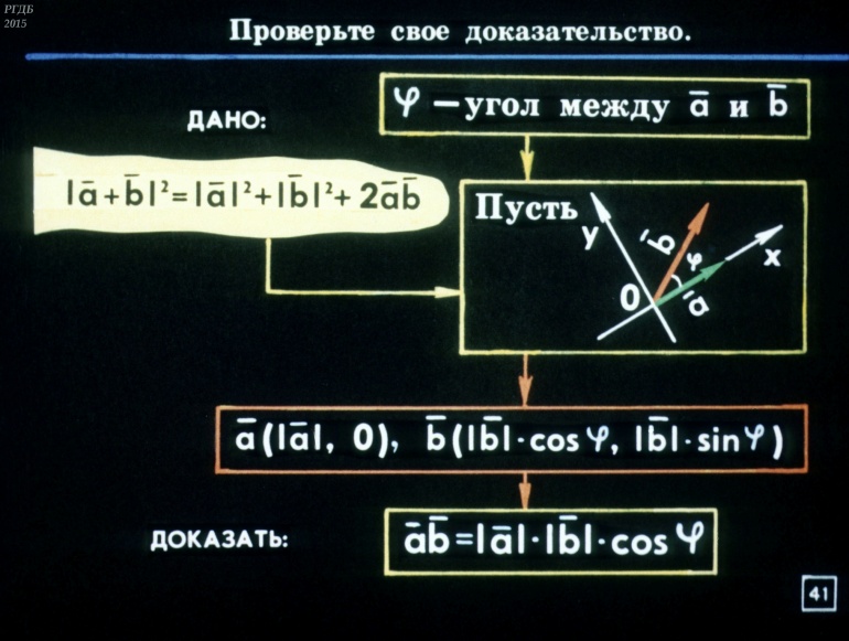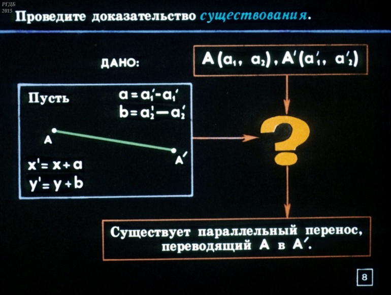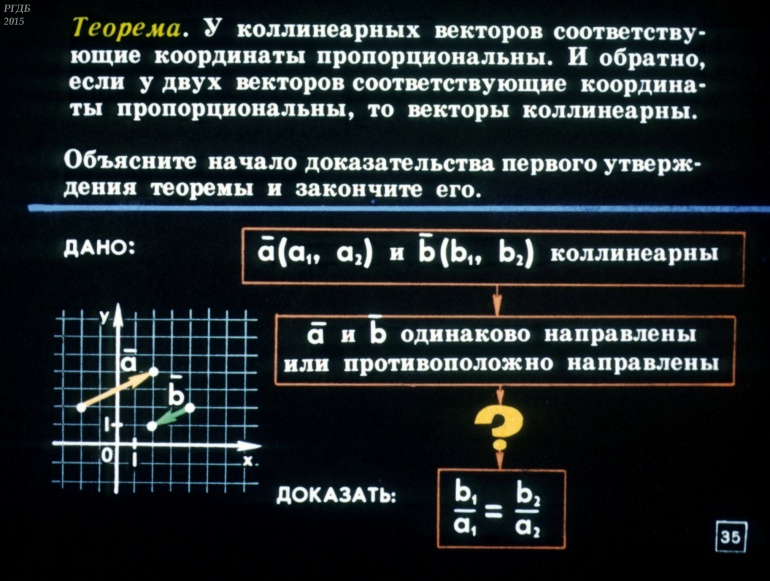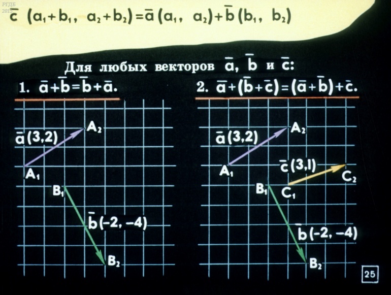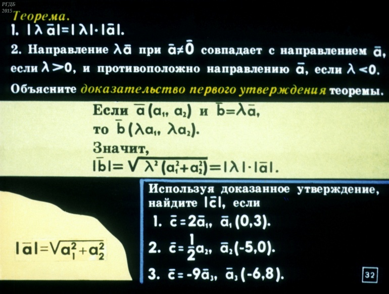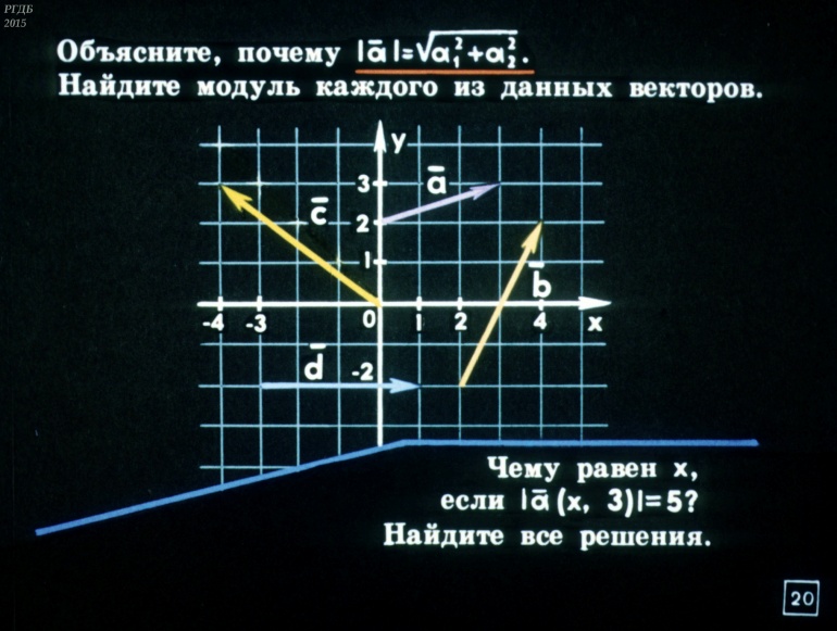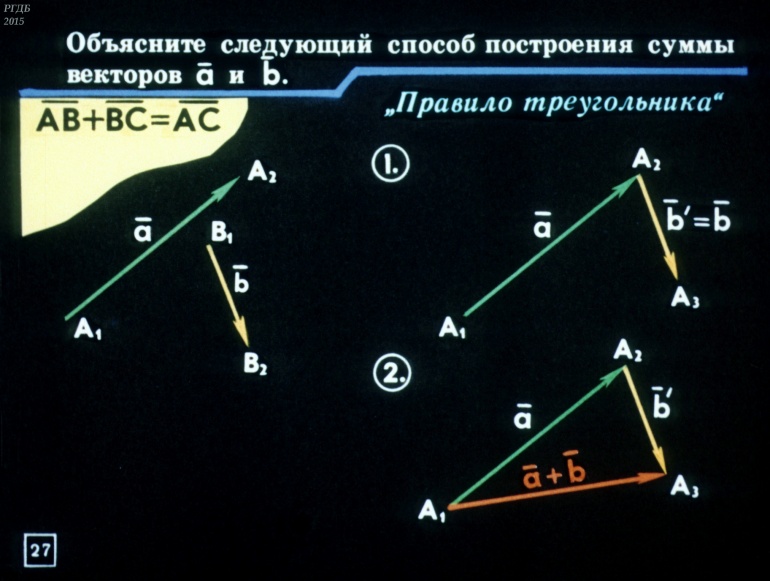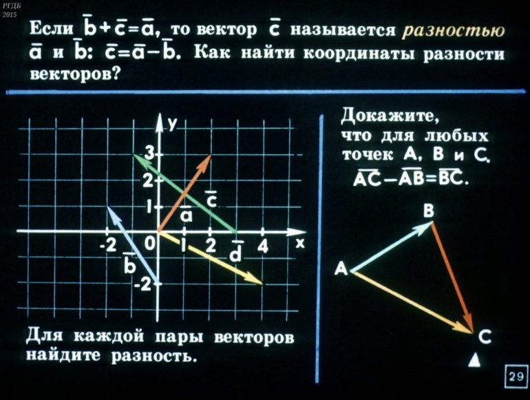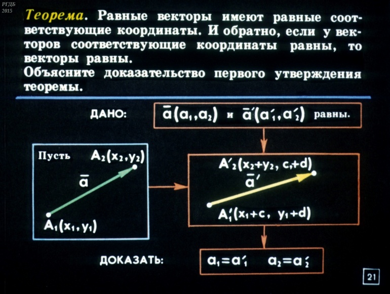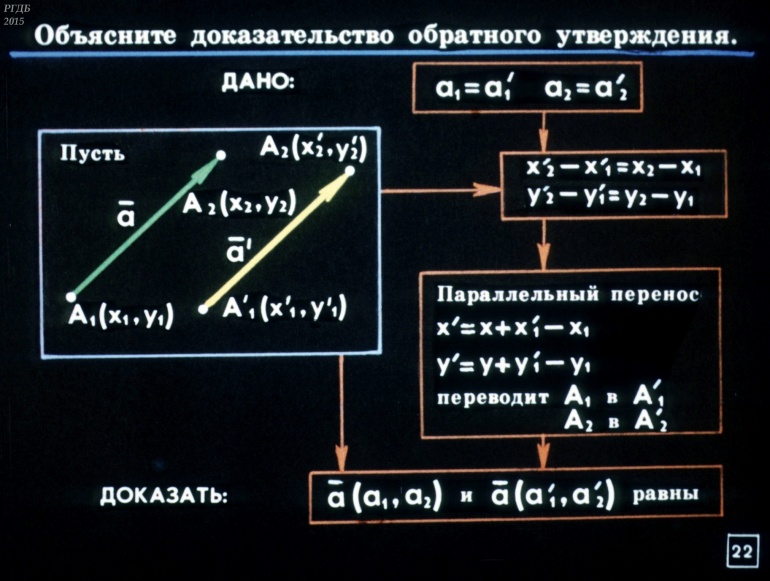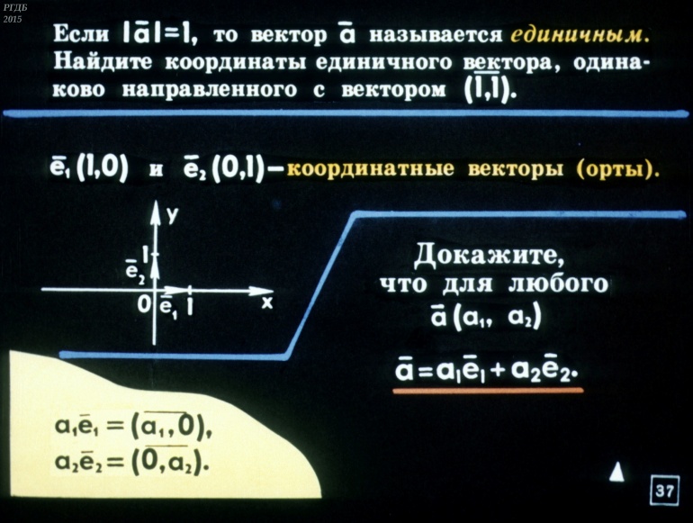 Векторы 0 Категория: ДиафильмыПросмотры: 818 Диафильм "Векторы". Геометрия для 8-го классаСтудия "Диафильм" Госкино СССР, 1984 год. Д-247-84