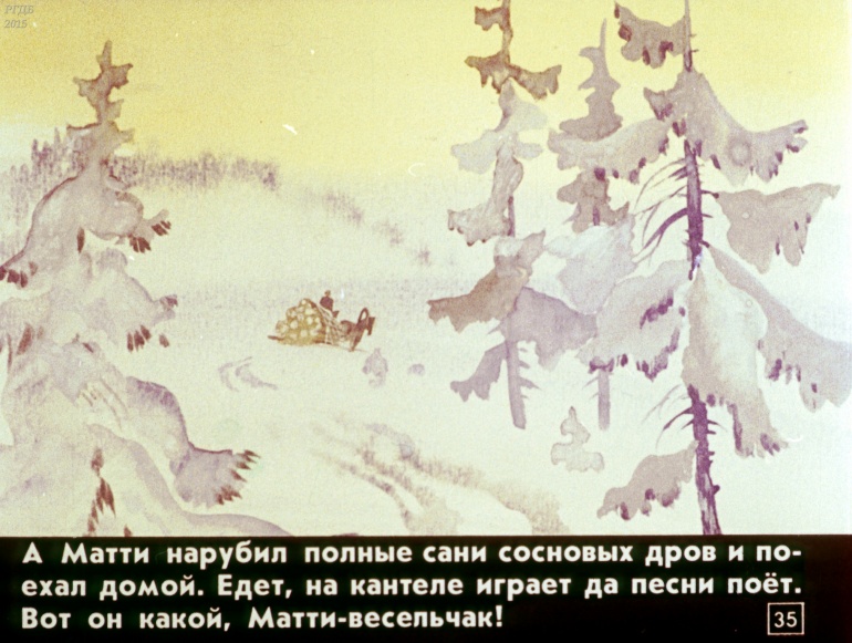 Веселый Матти 1 Категория: ДиафильмыПросмотры: 1 100 Диафильм "Веселый Матти". Карельская народная сказкаСтудия "Диафильм" Госкино СССР, 1986 год. Д-183-86, цветной 0-30 копеек