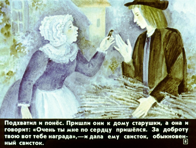 Волшебный свисток или золотые яблоки 1 Категория: ДиафильмыПросмотры: 965 Диафильм "Волшебный свисток или золотые яблоки". По мотивам французской сказкиСтудия "Диафильм" Госкино СССР, 1971 год. Д-201-87, цветной 0-30 копеек