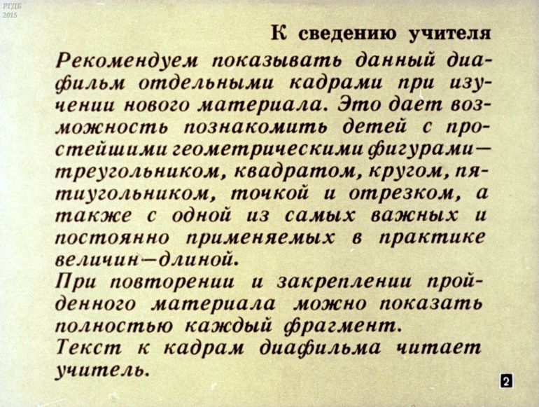 Геометрический материал в подготовительном классе 0 Категория: ДиафильмыПросмотры: 740 Диафильм "Геометрический материал в подготовительном классе".Студия "Диафильм" Госкино СССР, 1982 год. Д-271-82, цветной 0-30 копеек