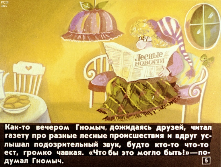 Гном Гномыч и Изюмка 0 Категория: ДиафильмыПросмотры: 980 Агнеш Балинт. Диафильм "Гном Гномыч и Изюмка".Студия "Диафильм" Госкино СССР, 1986 год. Д-033-86, цветной 0-30 копеек