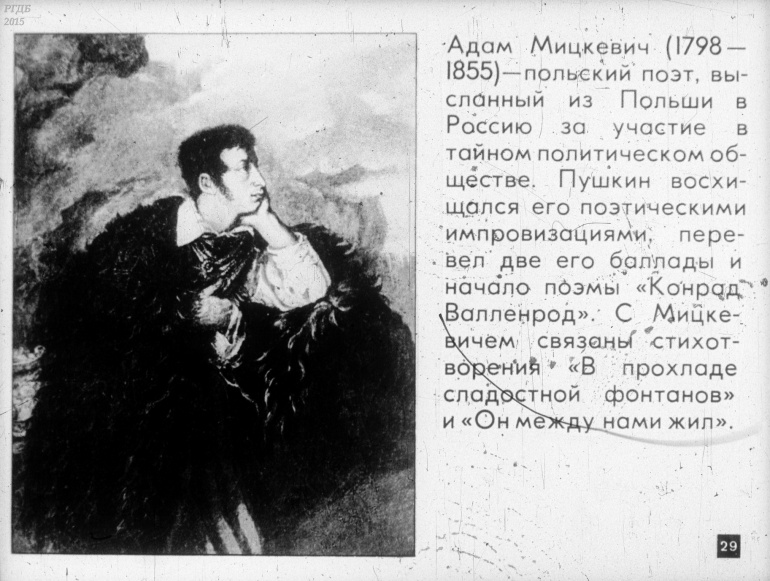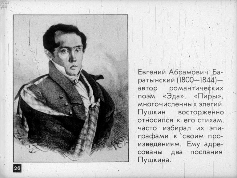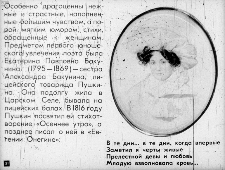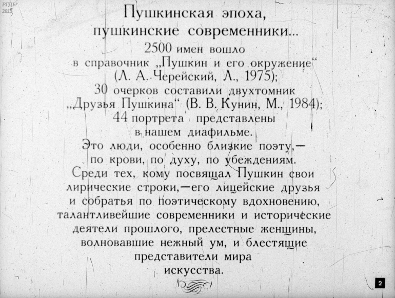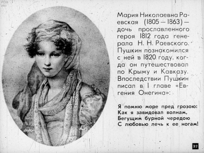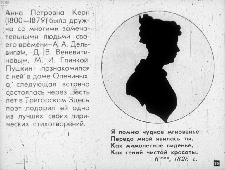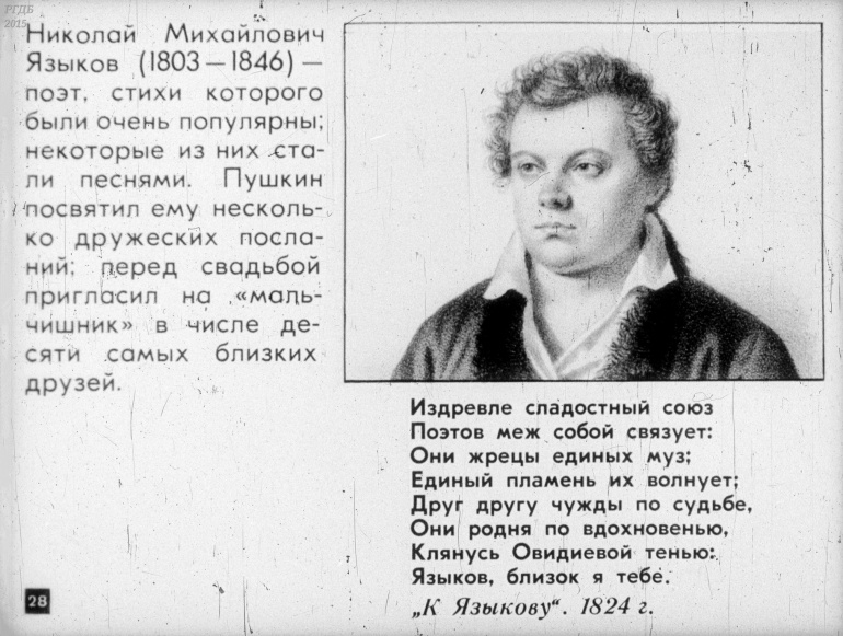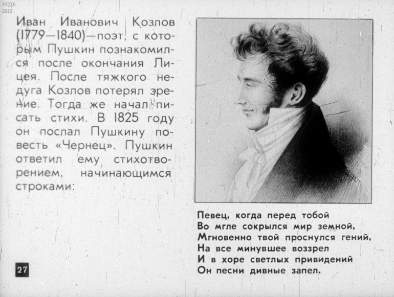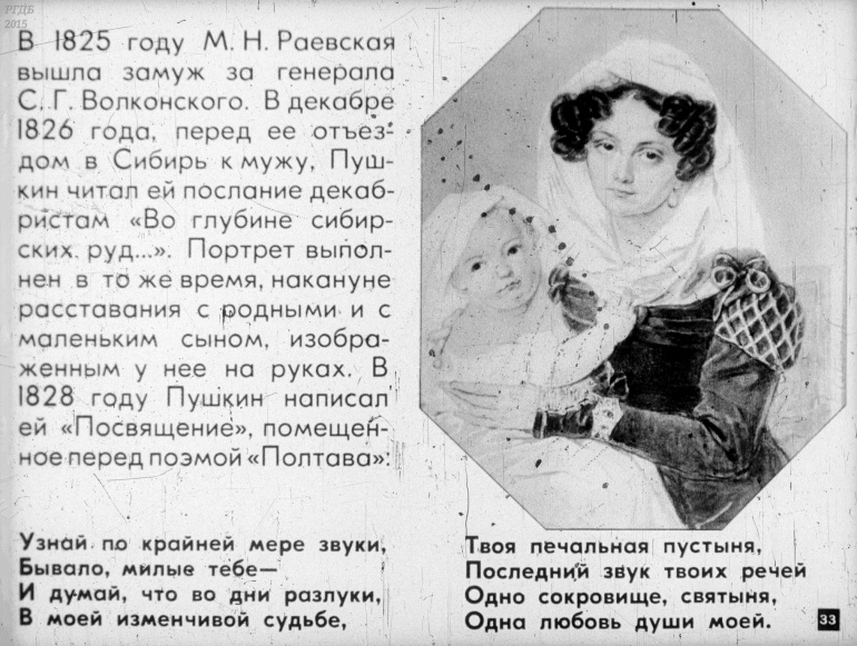 44 портрета представлены в нашем диафильме. Это люди, особенно близкие поэту, — по крови, по духу, по убеждения.