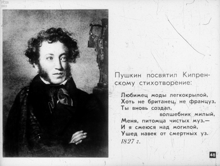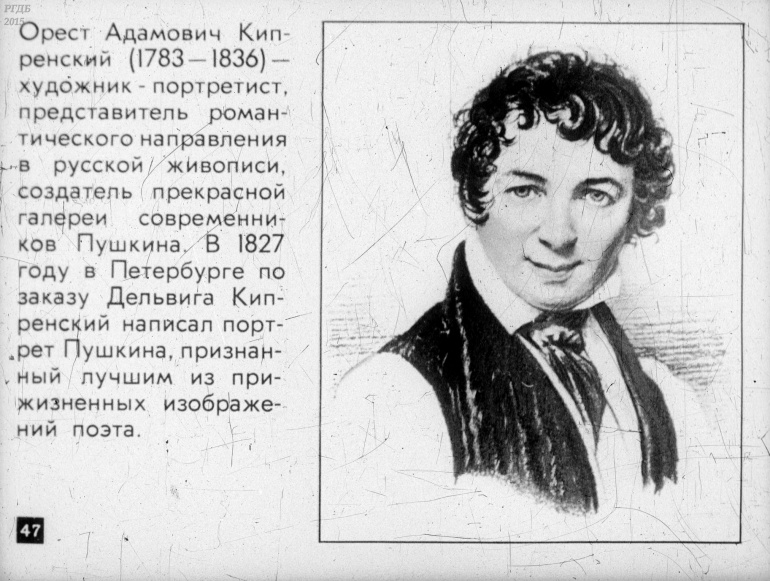 Орест Адамович Кипренский (1783—1836) — художник - портретист, представитель романтического направления в русской живописи, создатель прекрасной галереи современников Пушкина. В 1827 году в Петербурге по заказу Дельвига Кипренский написал портрет Пушкина, признанный лучшим из прижизненных изображений поэта.