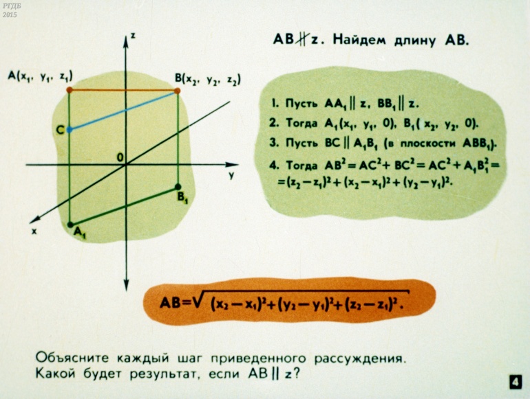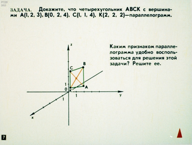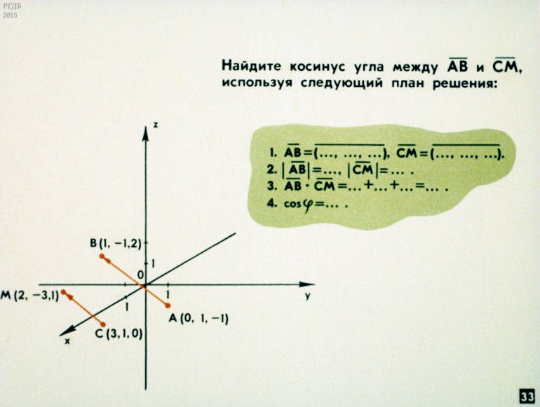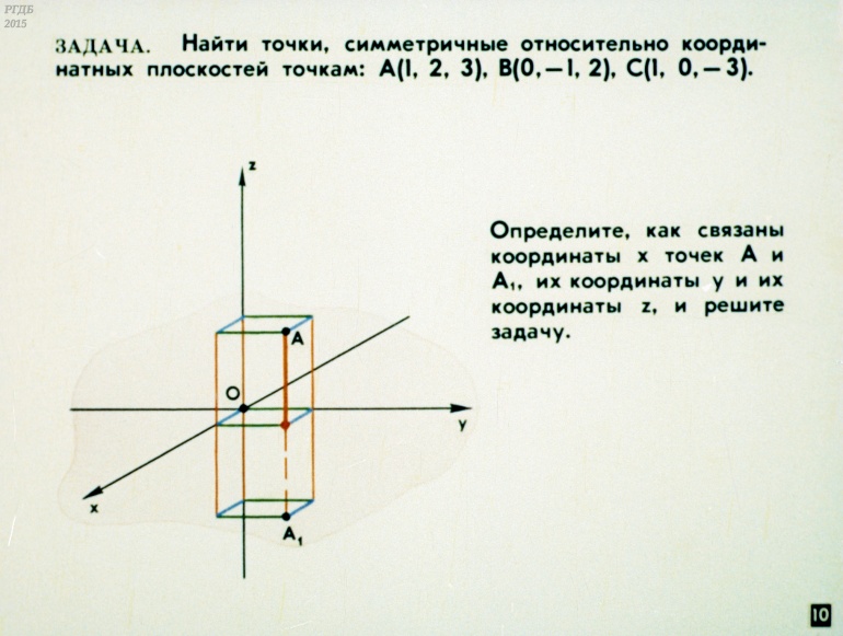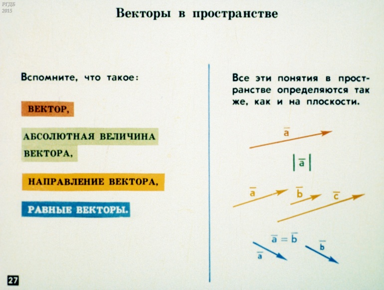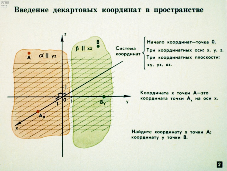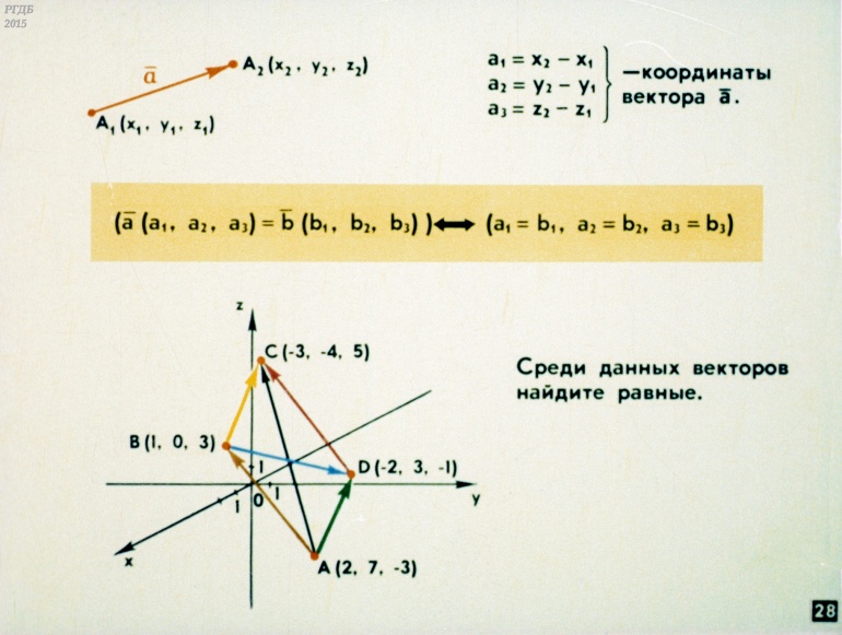 Декартовы координаты и векторы в пространстве 0 Категория: ДиафильмыПросмотры: 900 Диафильм по математике "Декартовы координаты и векторы в пространстве".Студия "Диафильм" Госкино СССР, 1987 год. Д-111-87, цветной 0-30 копеек