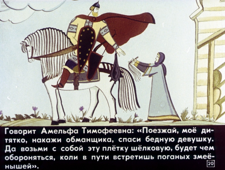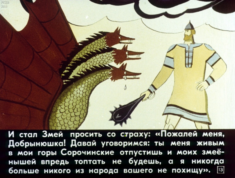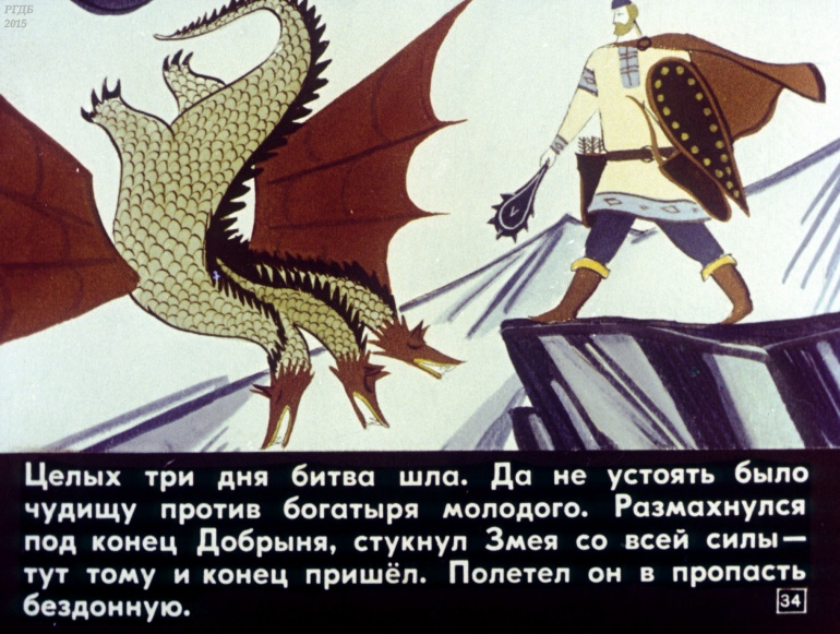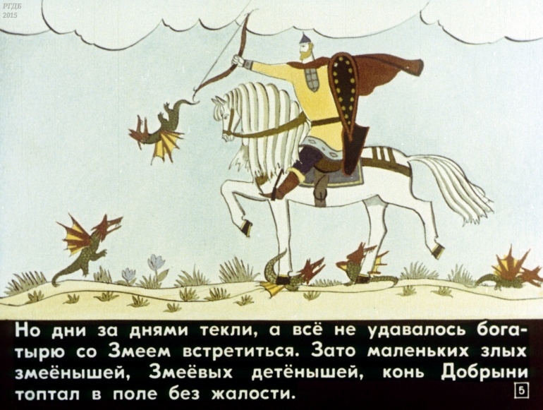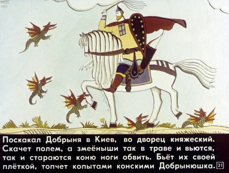 Добрыня и змей 0 Категория: ДиафильмыПросмотры: 1 104 Диафильм "Добрыня и змей".Студия "Диафильм" Госкино СССР, 1983 год. Д-054-83, цветной 0-30 копеек